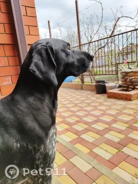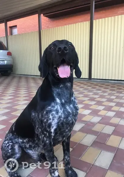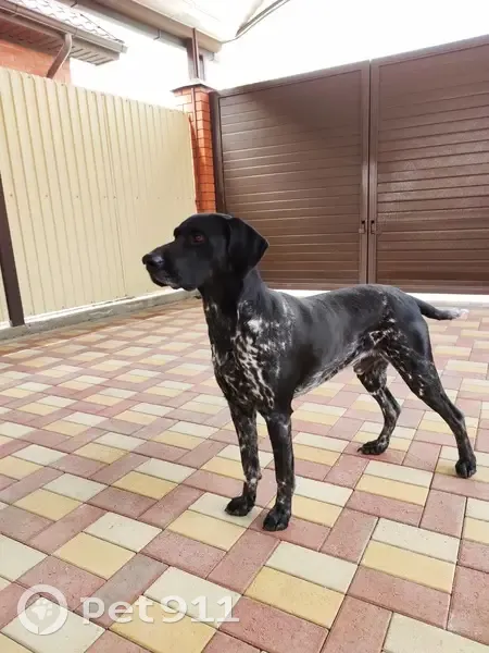30 октября убежал из дома ст. Елизаветинская, ул. Красная/Кубанская. Порода курцхаар (охотничья). Кличка Яр. Окрас черный с белыми пятнами. На собаке был коричневый ошейник.