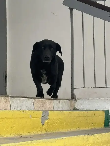 Овчарка, кобель 4 года, спина черная, лапы с подпалом. Черный ошейник с красной полоской по бокам. Выбажал из дома и побежал в сторону дороги к остановке. Пес добродушный, не злой, доверчивый несмотря на крупный размер.