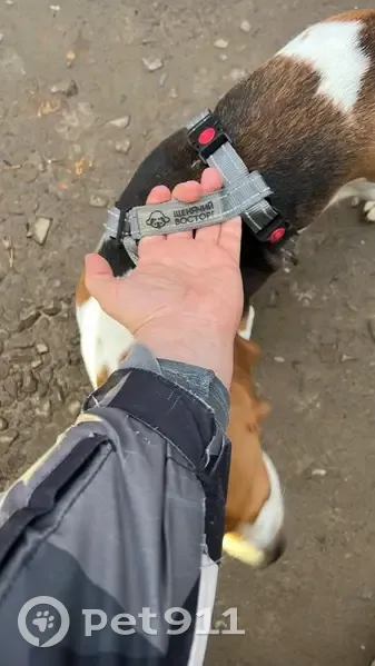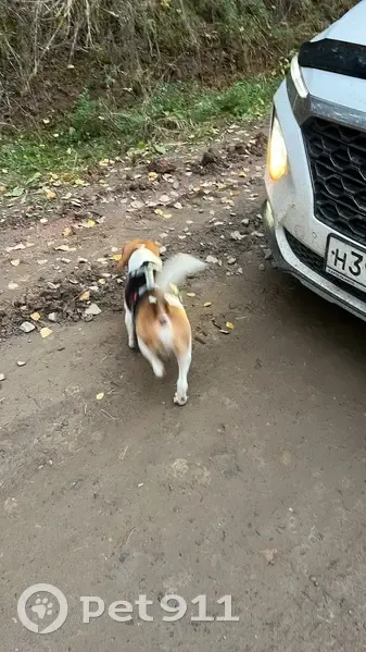 Найдена собака. Бигль. Бегал по дороге в лесу. Пёс прибран, на нем шлейка, достаточно дружелюбен, скулил, напуган, хотел взять в машине вещи, он запрыгнул и сел на водительское селенье, больше от меня не отходил. Около часа обходили с ним окрестности и стояли на дороге. В местных чатах подняли всех на уши, пока тишина. Нашлись отзывчивые люди взяли к себе временно накормили напоили (выпил много) видимо давно бегает.