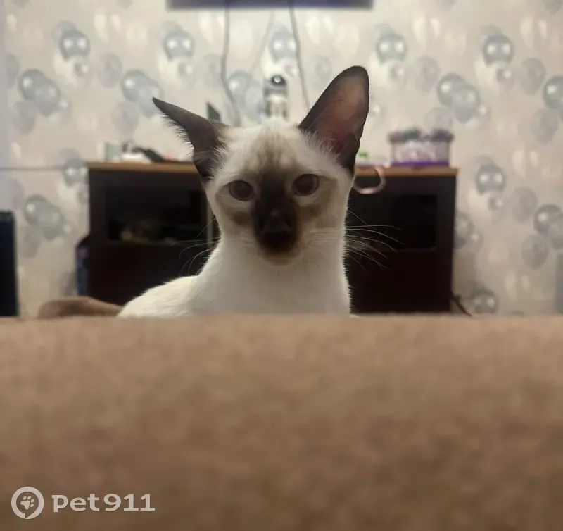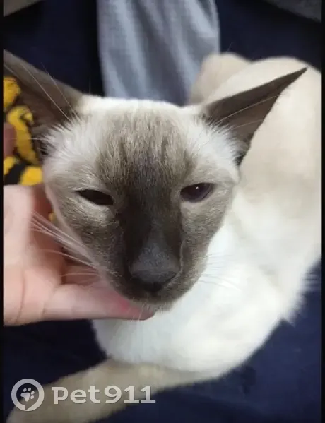 Тело беленькое. Хвост ,ножни ,мордочка и ушки серенькие,глаза голубые, хвост длинный и кончик хвоста немного загнут . Вышла ночью на улицу и не вернулась