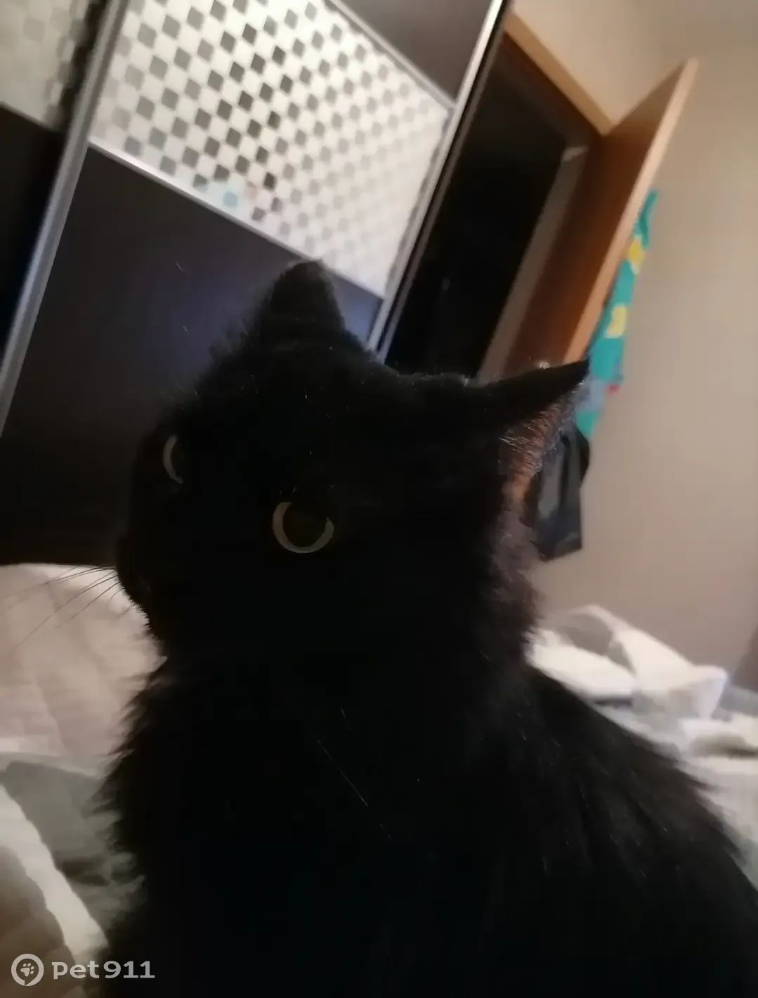 Пока были в отпуске от родителей из своего дома сбежал домашний, пушистый, черный кот, очень боится всего и всех. Кот совершенно не приспособлен к уличным условиям, у него удалены почти все зубы (осталось 3 клыка)