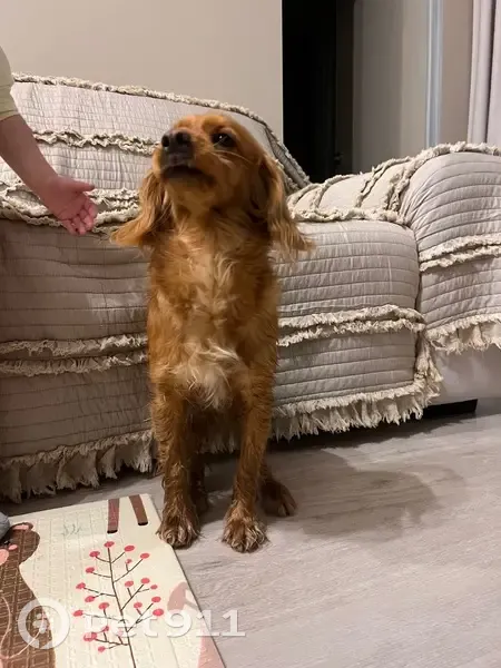 Фенотип спаниеля. Девочка небольшая рыжая, без хвоста, молодая. Спокойная, тихая, явно бывшедомашняя, хоть и с колтунами под ушами. Держать у себя не могу!