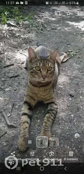 Котик мальчик,1 год 2 мес,окрас серо-коричневый в пятнышки и полоски,как тигр,метис,смесь свозможно, бенгальца.Больше 5 кг.,лапы мощные,с зеленым ошейником,на обороте адрес написан и телефон.Потерялся возле дома Огородная 2 и Садовый 10,Всегда гулял в одном и том же месте,знал подъезд и квартиру,все соседи его знали.Вышел на улицу ни в обед,ни вечером не вернулся