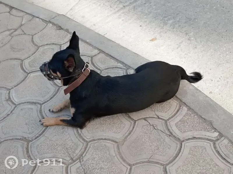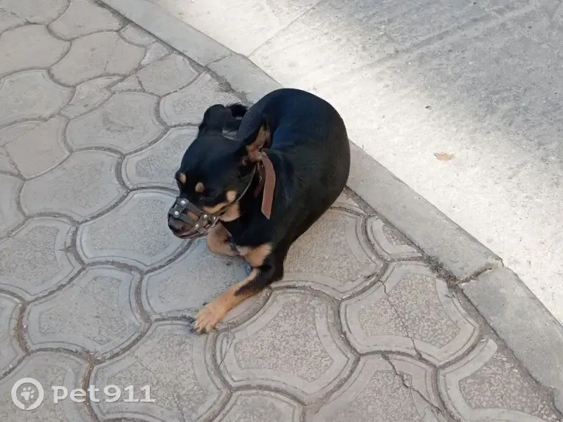Найдена собака потеряшка. Черный карликовый пинчер. Черный намордник, коричневый ошейник. Ищем хозяина, так как не можем забрать её, с места уходить не хочет. Звонить +7 918 42 22 58O сейчас (12.08. 10:45) находится тут ул. 9 Мая, 45В, Евпатория, возле стоматологии Лидер(район Максимума)