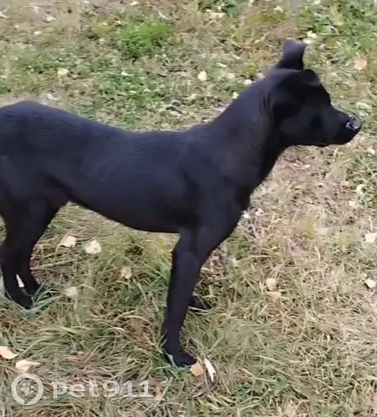 Собака полностью чёрного цвета, худая ,короткошерстная.На носу есть шрамы от укусов, глазки узковатые,кончики ушей свисают. Лапки худенькие, немного на растопырку когда бегает. Он был потерян новыми хозяевами на даче якобы сбежал,вырвался их шлейки.