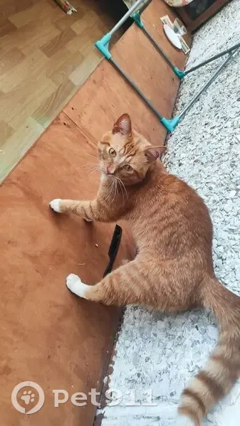 Этот кот живёт на улице ,за домом дружбы 85,у него кошка мама вместе с ним разноцветная ходит .их кормят на улице . каждый день вижу их с балкона и к нам во двор гулять ходят ,с мои котом вместе гуляют .