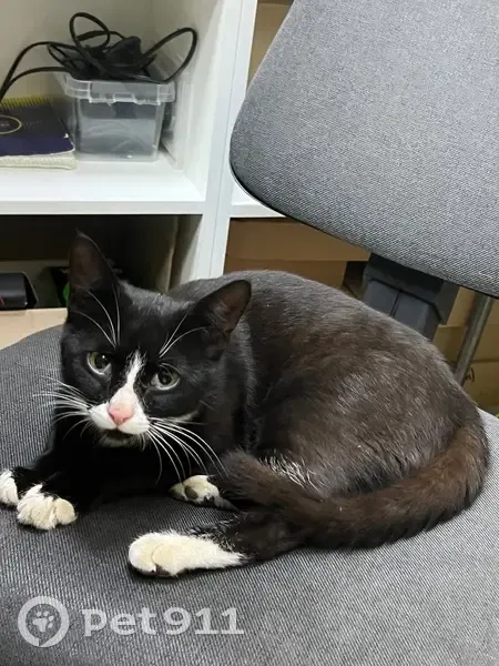 Молодой кот появился недавно в этом районе. Весь окрас черный, есть местами белое. Очень ласковый, красивый и добрый. Тут его все кормят, но надеемся, что найдем ему новых хозяев или найдутся старые