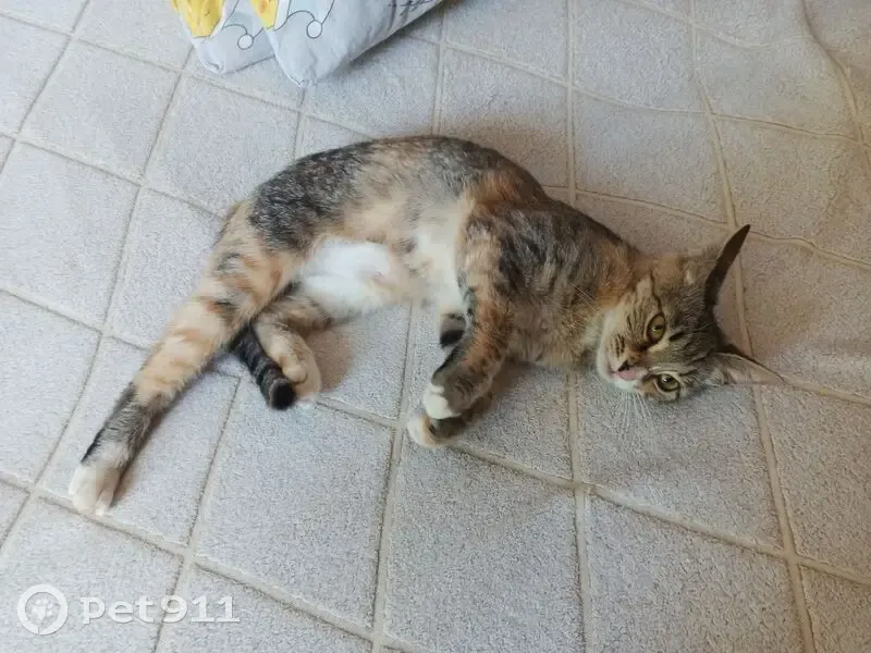 Найдена молодая кошечка на Первомайской. Сидела испуганная в подъезде. Видно, что домашняя, к лотку приучена. Очень ласковая девочка. Взяла на передержку, ищу старых или новых хозяев