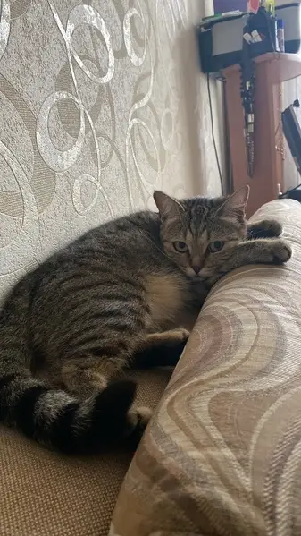 Найдена кошка, помесь британской и дворянской пород, глаза зеленые. Сросшийся перелом передней лапки, сломан клык. Возраст примерно 2 года. Хозяин найдись!