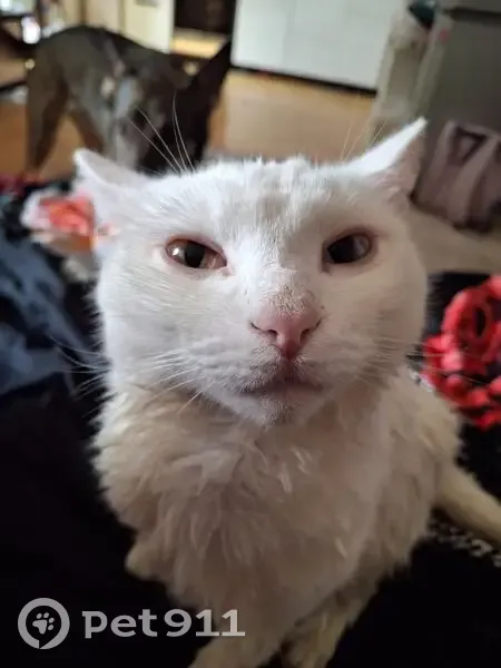 Найден красивый абсолютно белый кот с разными глазами. Кот особенный полностью глухой. Кастрированный, значит точно был домашним. Ищем старого или нового хозяина, готового к такому особенному питомцу.