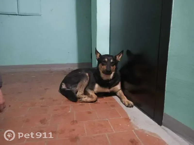 Найдена сегодня вечером в районе улицы Зои Космодемьянской, спокойная, очень уставшая собака, без ошейника, есть след от него, возможно испугалась грозы.Пришла в подъезд и уснула, пока забрала ее домой.