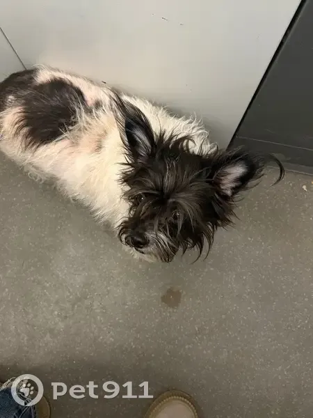 Собака найдена в лифте по адресу Мира д. 48 ( ремзавод) Очень напугана, вся дрожит, ездит в лифте, иногда выходит на этажи, но потом возвращается в лифт Скорее всего ее бросили в лифте( Окрас белый, с черными пятнами