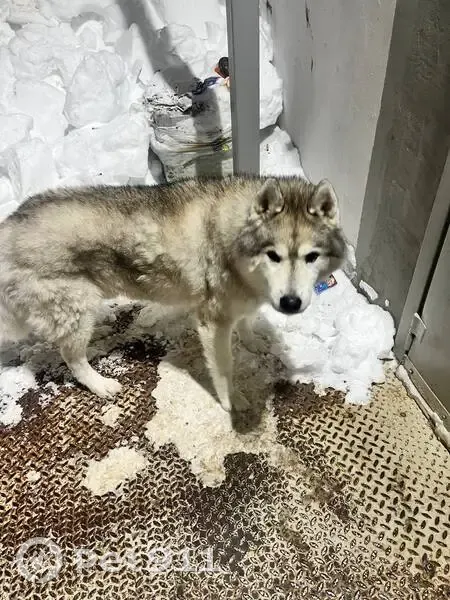 Найдена собака, зашла в магазин Пятёрочка на улице Пролетарская 22. Серо-белая окраска, ласковая, к людям идет. Обнаружено в районе 20:30.