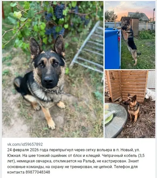 В районе набережной найден щенок овчарки. Просим откликнуться хозяина.