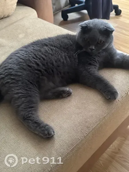 Шотландский вислоухий,полный,на руки не идет,серого окраса,коричневые глаза,приблизительно в 12:00 убежал 12 июля Просим помощи,если кто-то видел +79104431457 Полина