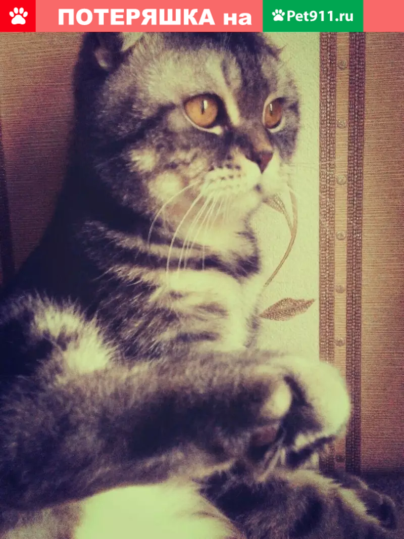 Скотиш фолд,Кот домашний,окрас серый с тёмными кругами на животе,если кто то видел его или забрали себе,позвоните по телефону Юлия