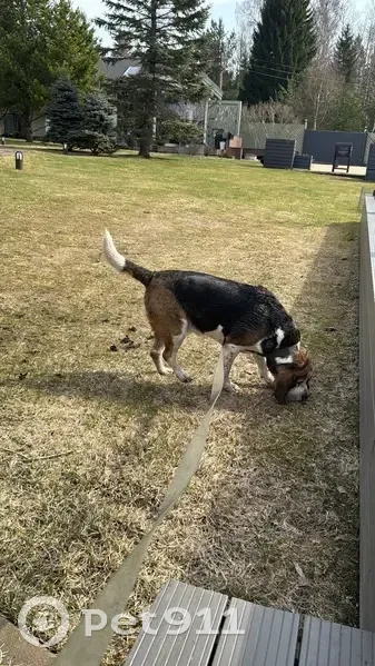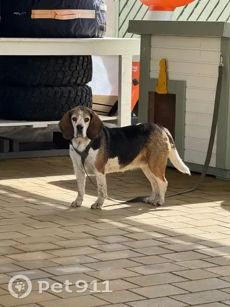 Окрас : черно коричный белый , нашла его на остановке. Вела себя дружелюбно даже игриво. Клейма нет :( Найдена собака Бигль ( девочка ) Лен обл , Всеволожский район , Сертолово - Медное озеро - Агалатово Утро субботы 19.04.2025 Территориально возле СНТ Холмы . Могла убежать из соседних поселков