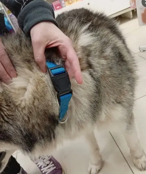 Открыла дверь и убежала в лес, был красный ошейник кожаный, из особенностей немного пугливая к людям и ушки стоят прямо, немного похожа на небольшого волка