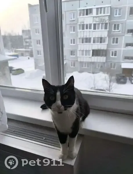 На бороде черное пятно. Кот выбежал в подъезд, мы не заметили. Когда обнаружили, что его нет пошли по соседям. Выяснилось, что он мяукал у входной двери в подъезд и один из соседей выпустил его на улицу.