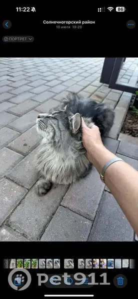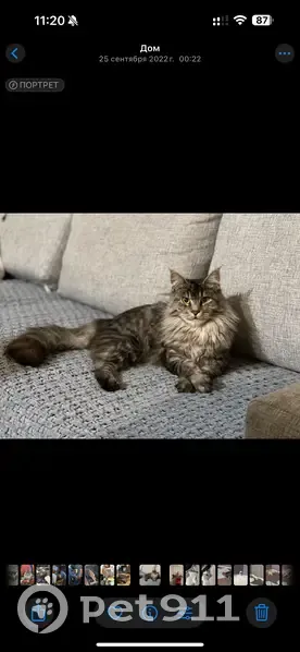 Чуть крупнее обычных кошек так как в роду когда-то были Мэйнкуны, кисточки на ушах, к людям идёт не охотно, не ласков. Серый с вкраплениями шоколада и светлой дымки. Без ошейника! Умоляю, если кто-то видел - сообщите!