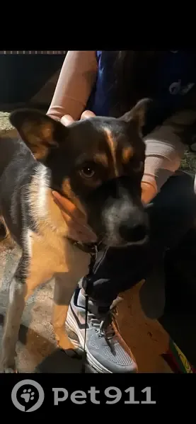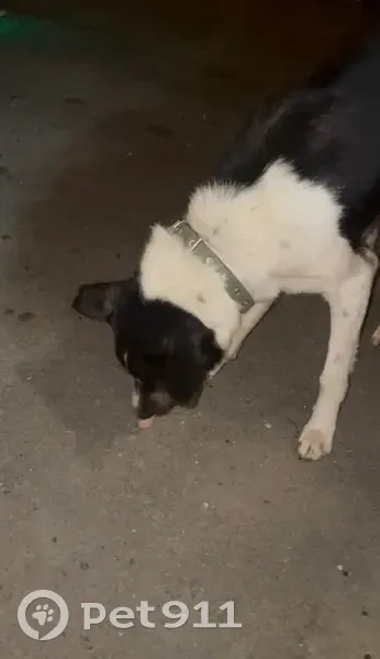 Зачастую видели данную собаку в районе Меридиана. В первую встречу на ошейнике (светло-зеленом) был оборванный поводок. Во вторую встречу поводка уже не было, ошейник тот же. Ласковая, гладить дается. Видно, что собака потерялась, вся исхудала. Подкармливаем периодически. Надеемся, что хозяин найдется