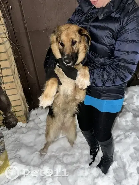 немецкая овчарка, возраст на вид 1-2 года, очень ухоженная, ласковая, обнимается, хочет домой, может от салютов сбежала… единственный момент, который смущает это - ошейник электрошокер на ней