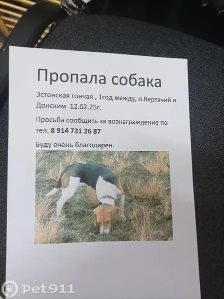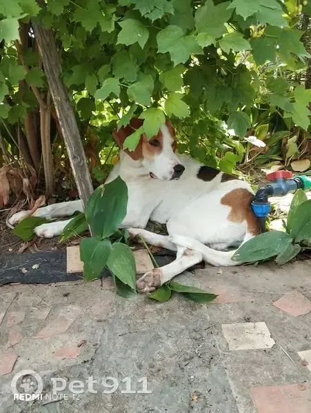 Собака пришла на дачи СНТ Шинник, был в ошейнике, теперь ошейник потерял, похож на охотничью гончую, Пёс дружелюбный, кошек не трогает, переодически живёт у меня на участке, я его подкармливаю, на выходные уходит на пляж, не кастрированный, зубы чистые, очень худой, сантиметров 60 в холке