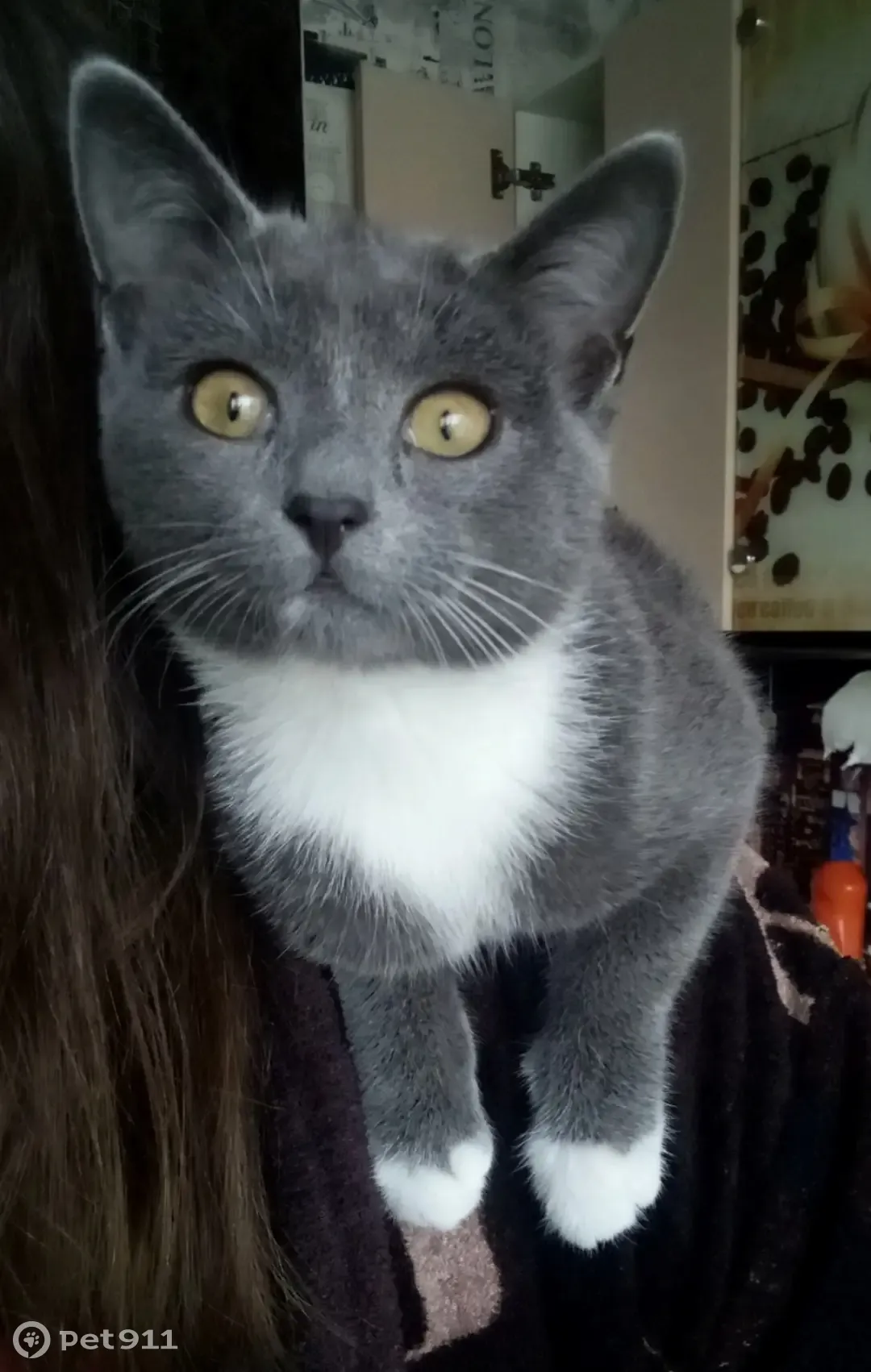 Выпрыгнула из окна (квартира на 1 этаже). Возле дома искали, не нашли. Кошка небольшая, по размерам как котёнок-подросток. Серый окрас, белая грудка, живот и белые носочки на всех 4-х лапках, глаза жёлтые.