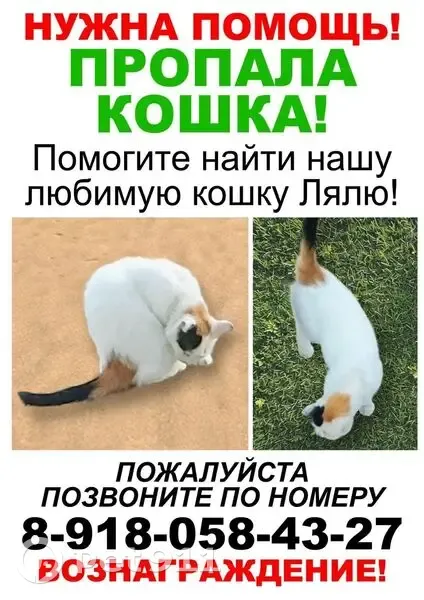 Окрас белый, хвостик и правое ухо оранжево-чёрные, Размер не большой, возраст 5 лет, Имеются хронические заболевания требуется постоянное лечение ГАРАНТИРОВАННОЕ ВОЗНАГРАЖДЕНИЕ ПРОПАЛА В ПЕРВЫХ ЧИСЛАХ ОКТЯБРЯ