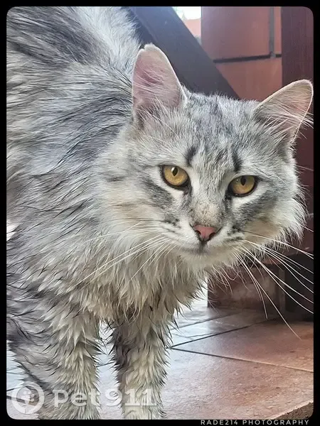 Серый с полосками. Как на первом фото только сейчас старше. На втором фото в зимней шубе. Глаза желтые. Одно ушко чуть надорвано. Пожалуйста позвоните если видели