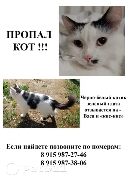 Потерянные животные Ярославль, фото: Пропала кошка, ул. Саукова, 10, Ярославль