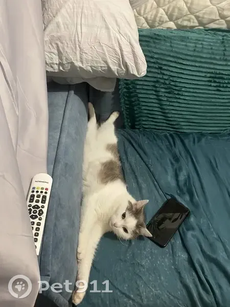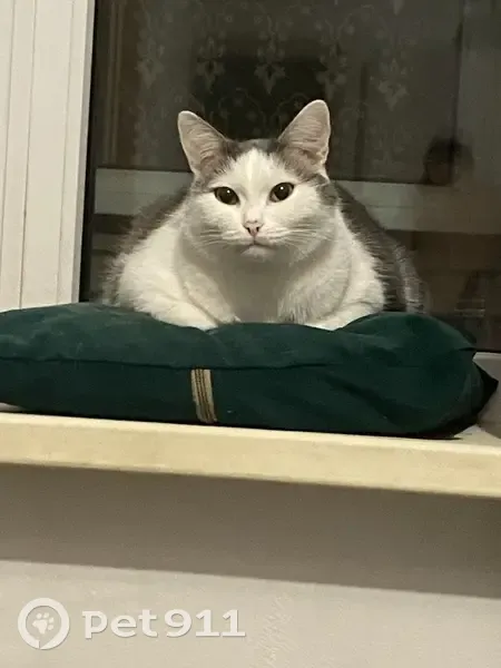 Бело серый Мордочка как рисунок сердечко Очень толстый,большой кот Средняя длина шерсти Потеряли на снт Андан