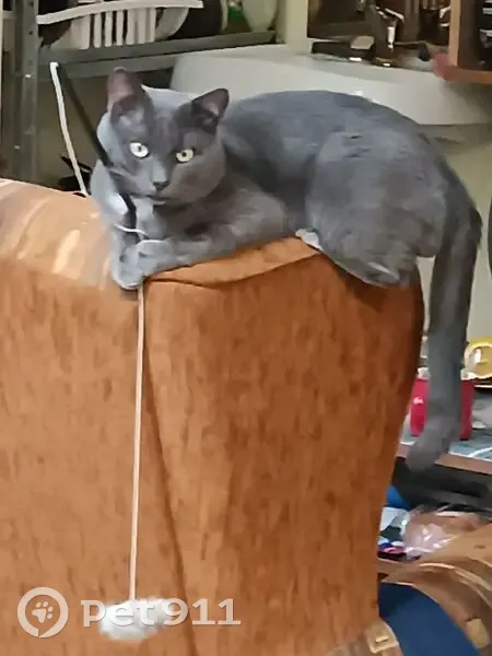 Серый кот с белым галстуком русская голубая