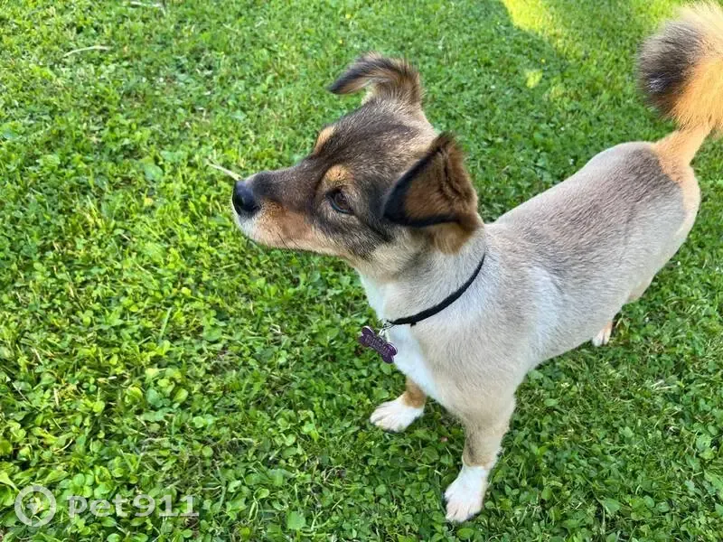 Помогите найти собаку! Убежала 20.07. Город Зеленоград, поселок Малино, напугана взрывами, может не подойти. Маленькая, около 35 см. Ошейник с адресником, как на фото. Откликается на кличку Мери