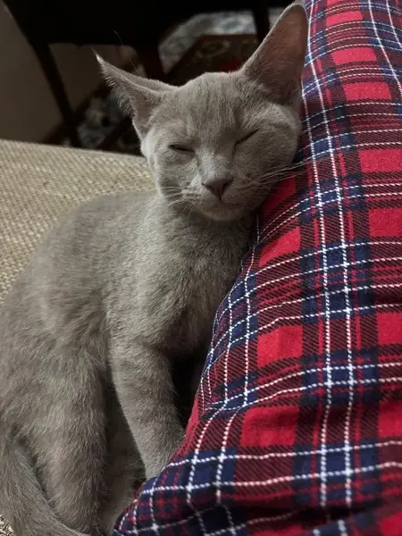 Нашла кошку, британка, небольшая, возможно подросток, очень худая. Сидит пока у меня в гараже, домой взять не могу, коту 16 лет никого не принимает. Хозяева новые или старые отзовитесь, кошечка очень ласковая, натерпелась бедолага