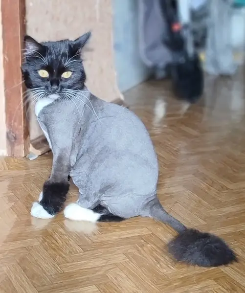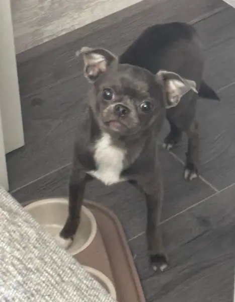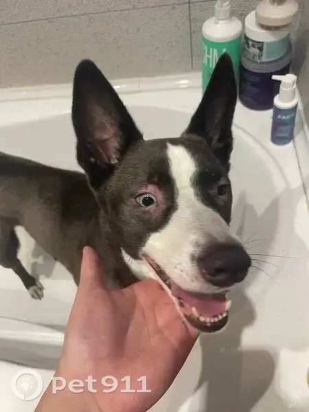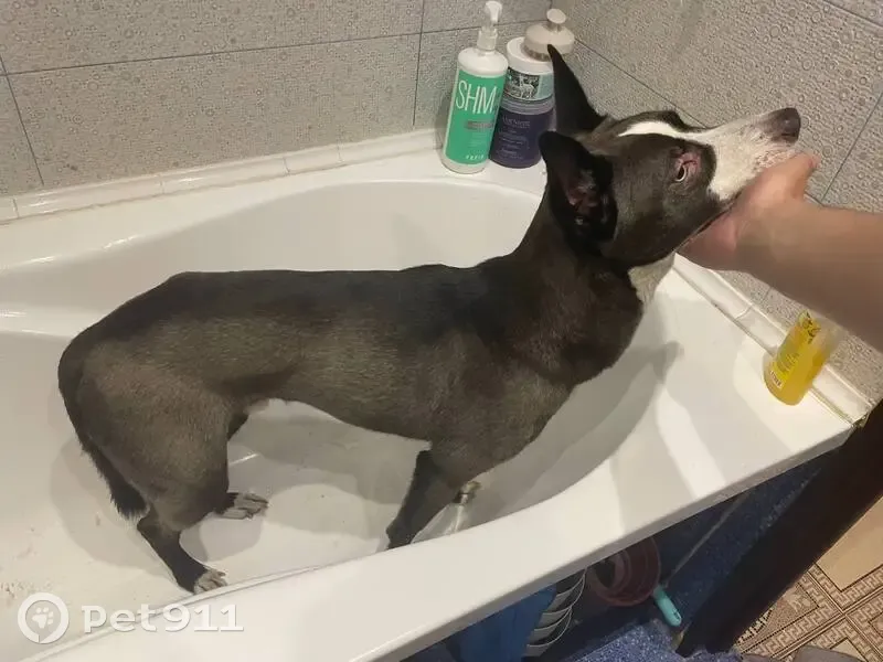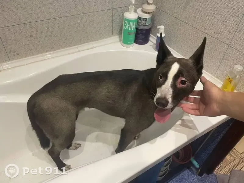 Кобель, на вид 6–8 месяцев, зубы, похоже, коренные. Окрас графитовый с черной полосой вдоль спины, белые «носочки», белая полоска на морде. Фаберже либо не опустились, либо кобель кастрирован — следов операции не найдено. Адресника и татуировок на собаке нет. Глаза с гетерохромией: один голубой, второй карий. Вокруг век — аллергия. Бегал и скулил в ЖК «Островского» около 13–14-го дома. Собаку задержали примерно в 22:30.