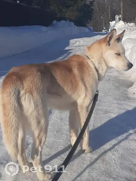 Окрас светло-песочный, лапы, грудь и морда молочного цвета. Течная сука. Добрая, умеет ходить на поводке, команды ОКД. Ищет дом. Если хозяин не найдется, могут отправить в отлов.