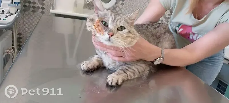 Найден кот. Ласковый, очень худой. Абсцесс на щеке из-за укусов. Прооперирован. Был не кастрирован, возраст до 2 лет. К лотку приучен. Похож на метиса шотландца. Придержан.