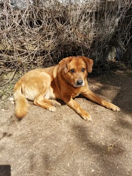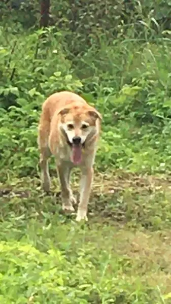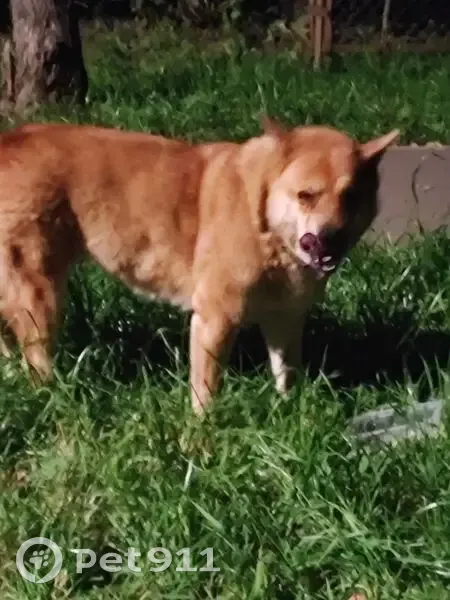 Собака, цвет рыжий, похожа на породу шиба-ину, может быть метис. Есть ошейник. Возможно у нее течка. Бегает в этом районе второй день. У собаки проблема с глазками, на фото видно темные выделения из глаз. Требуется лечение.