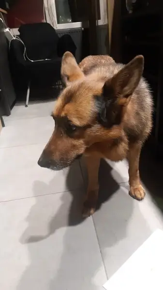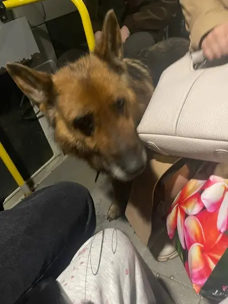 10 лет, 60см в холке, черная спина и рыжие лапки, убежал в ошейнике с поводком