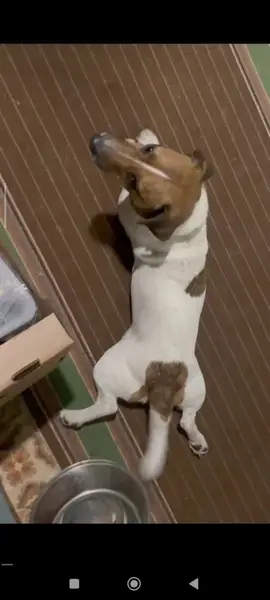 Кобель,джек рассел терьер по кличке Приз. Серый противоблошинный ошейник. Рыжее пятнышко у основания хвоста и на правом боку. Есть клеймо.