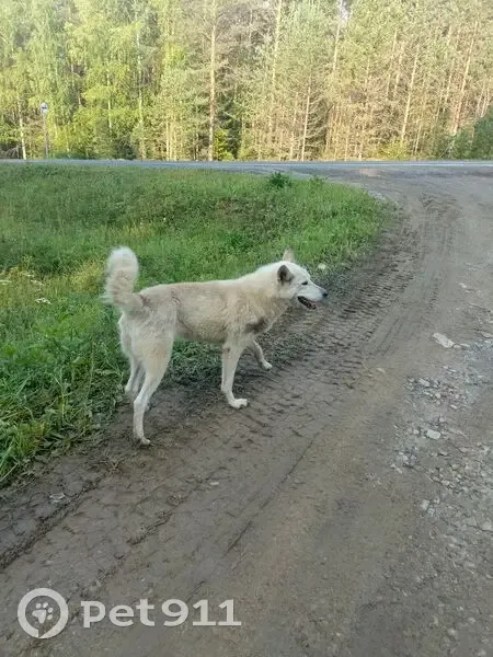 Молодая белая собачка, девочка ластивая, играется нашли недалеко от отворота на Тюлькино, 17км , находится в городке у газовщиков, пришла где-то примерно неделю назад .