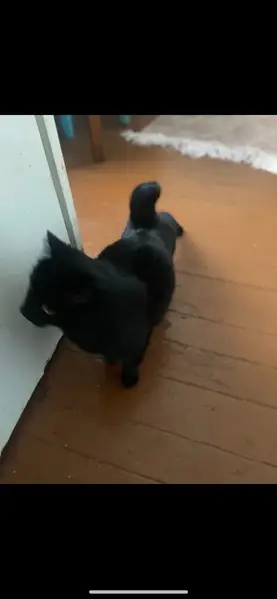 Чёрная красавица появилась в нашем подъезде, живёт уже примерно 2 недели. На улицу уже не выходит, по всей видимости боится, что назад не впустят, а на улице мороз. Возраст, примерно 6-7 месяцев. Окрас - полностью чёрный. Очень активная, ищет общения. Мурлычет очень громко, тарахтит как трактор.