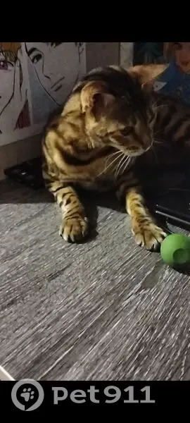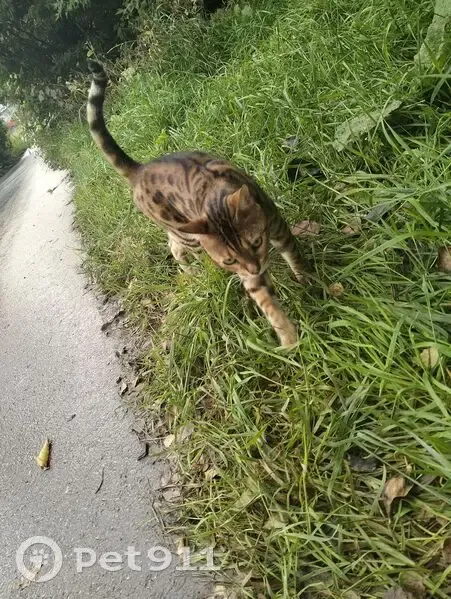 Коричневатый окрас шерсти с черными пятнами как у леопарда. Порода Бенгал. Худое тело, чуть косолапые задние лапы. Ласковый, но пугливый. Вышел погулять и не вернулся. Откликнуться на кличку Бакс. Далеко от дома не ходил гулять. Не носит ошейник, небольшая залысина у левого уха от ранки.
