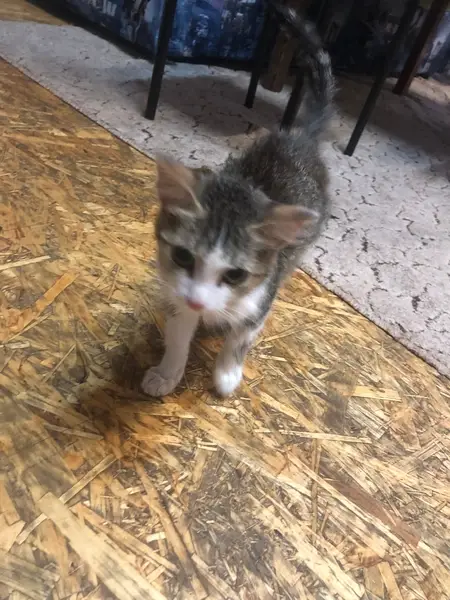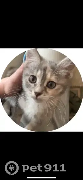 Маленькая, резвая, игривая, очень красивая трёхцветная малышка(коричнево-бело-серая), На фото глазки серые, но они у неё начали меняться, так что возможно сейчас (желтого или же коричневого цвета ), выбежала на улицу ( делала так ещё пару раз до этого, но всегда через минут 10 возвращалась), а в этот раз выбежала и больше не пришла