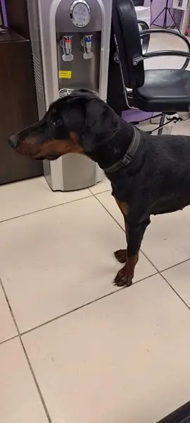 Доберман, сука, черно-подпал. Залом на правом ухе. Убежала за родственницей от меня, через дорогу. Её ударил автомобиль, затем она встала и побежала не за сестрой, а прочь. Так мы её больше не видели. Была в коричневом кожаном ошейнике с зелёным поводком, с тренировочным эшо ошейником, он не помог её остановить. При поиске тоже не помог, приблизительный радиус действия эшо примерно 800 м.