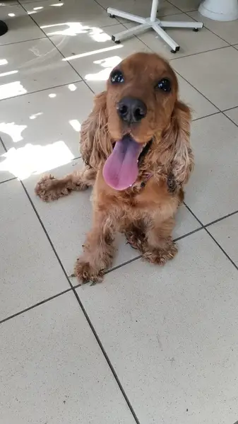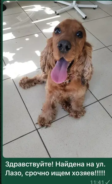 Чуть полная, пушистая рыжая добрая собака. На шее ошейник. Очень любит детей, могла увязаться за ребенком и убежать с ним. Не любит сучек, дружит с кобелями. Умеет давать лапу и сидеть