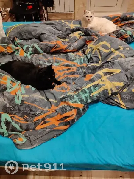 Кот возраста 5 лет. Полностью черный, на животе есть немного белой шерсти. Глаза жёлтые. Упитанный Особая примета - нет одной задней лапы Пуглив, молчалив