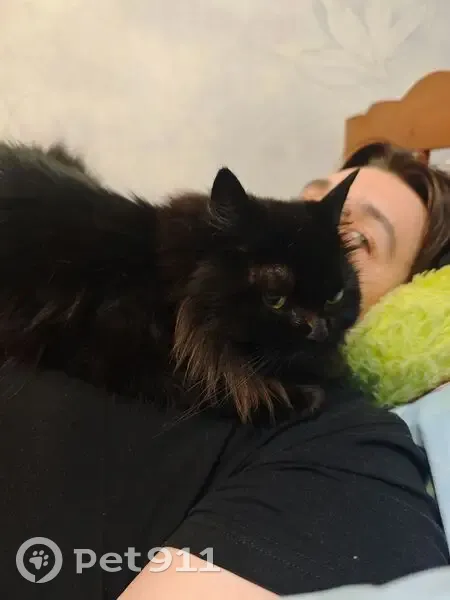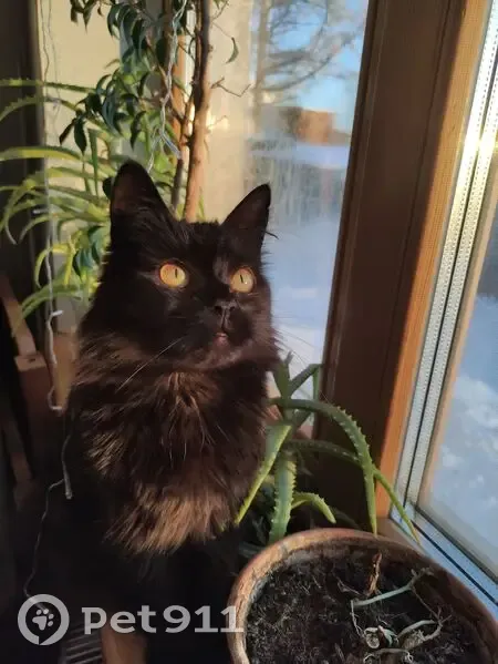 Пушистая, длинная шерсть, худенькая, на шее есть своеобразные "бакенбарды", которые на солнце переливаются рыженьким. Предположительная порода Шантильи Тиффани. У неё текут глазки. Она любила гулять на балконе (1 этаж, не застеклён). Выпустили подышать свежим воздухом и пропала. Пугливая, но любопытная, к незнакомцам не пойдёт.