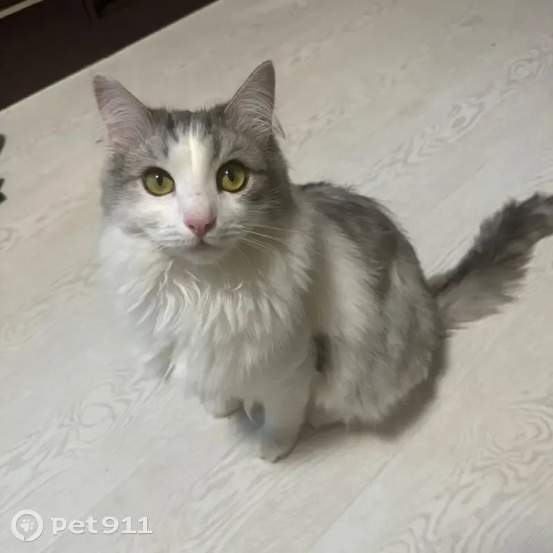 окрас белый с серыми пятнами, животик полностью белый, хвост в основном серый, глаза желто-зеленые, нос и ушки розовые. Очень пушистый и крупный по размерам. Пугливый, в особенности перед не знакомыми для него людьми и местностью. Кличка-Филя